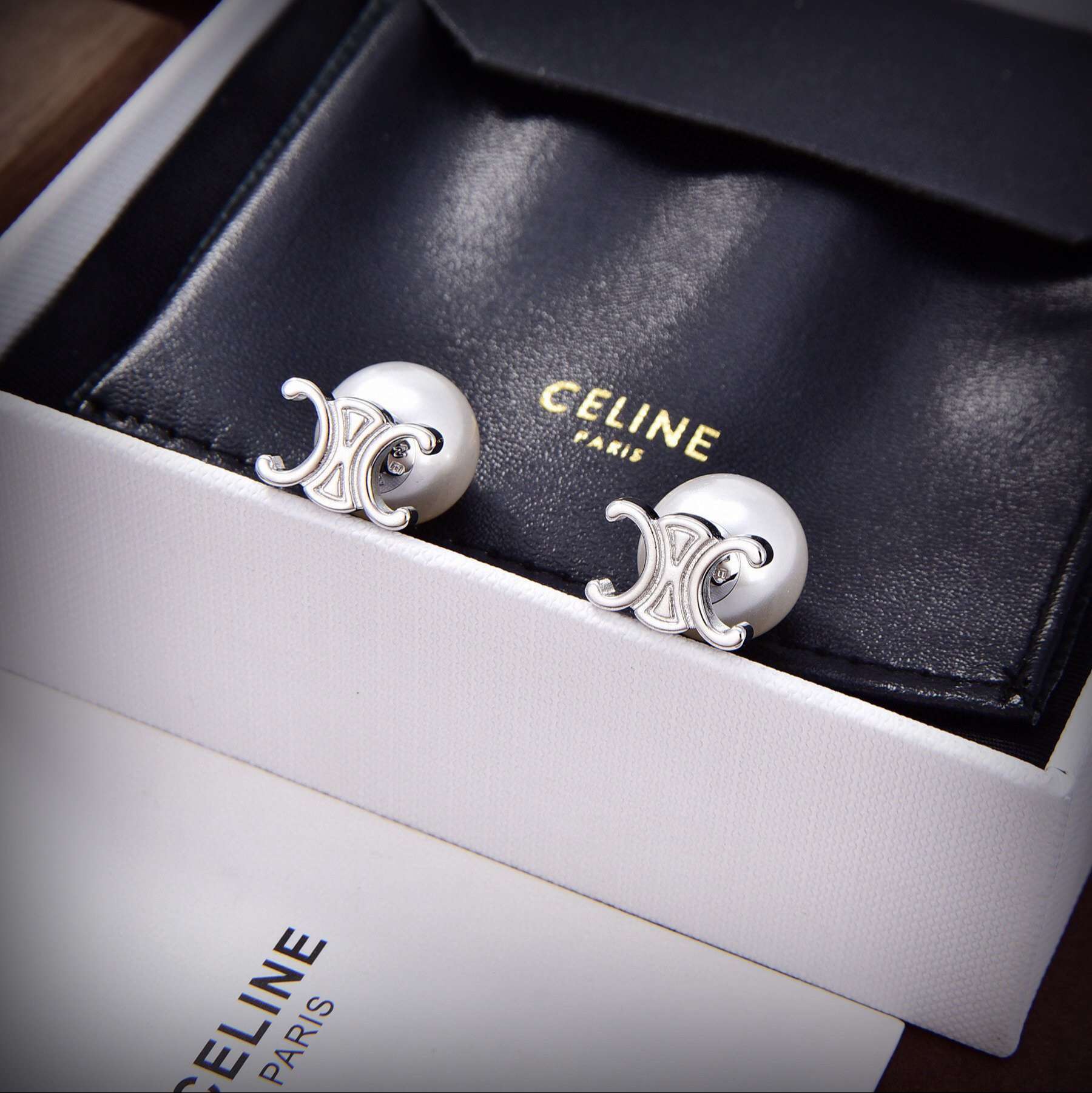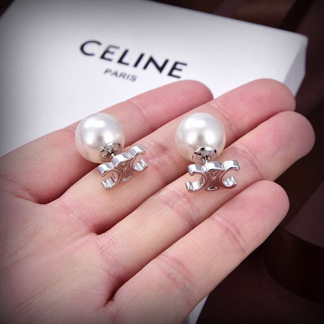 Be the first to review “Celine Triomphe Pearl Earrings Silver For Women”