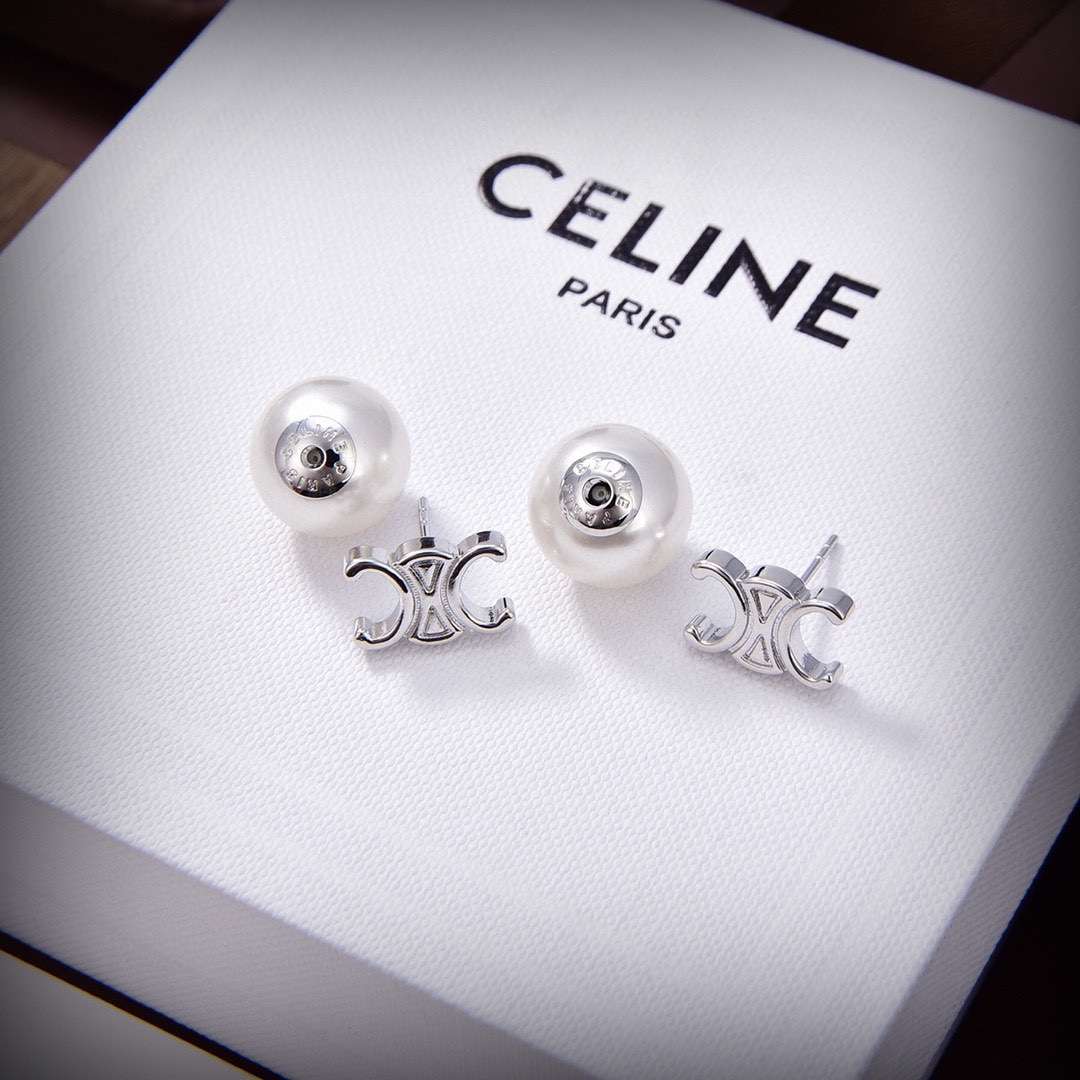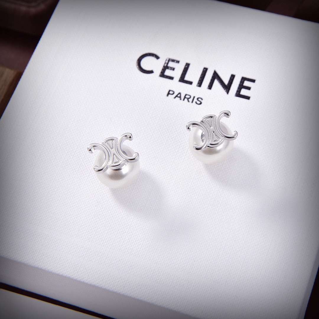 Celine Triomphe Pearl Earrings Silver