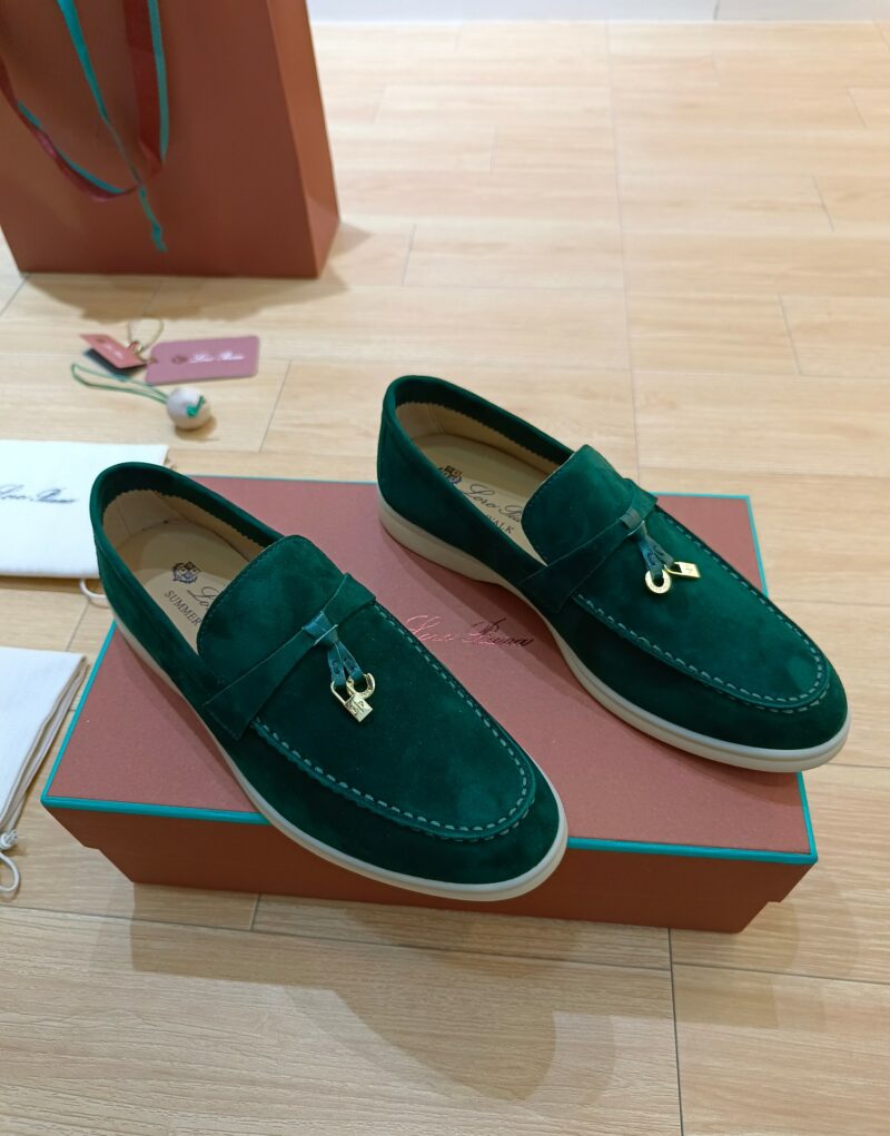 Loro Piana Summer Charms Walk Loafers Green For Women – FAE5444 50RT