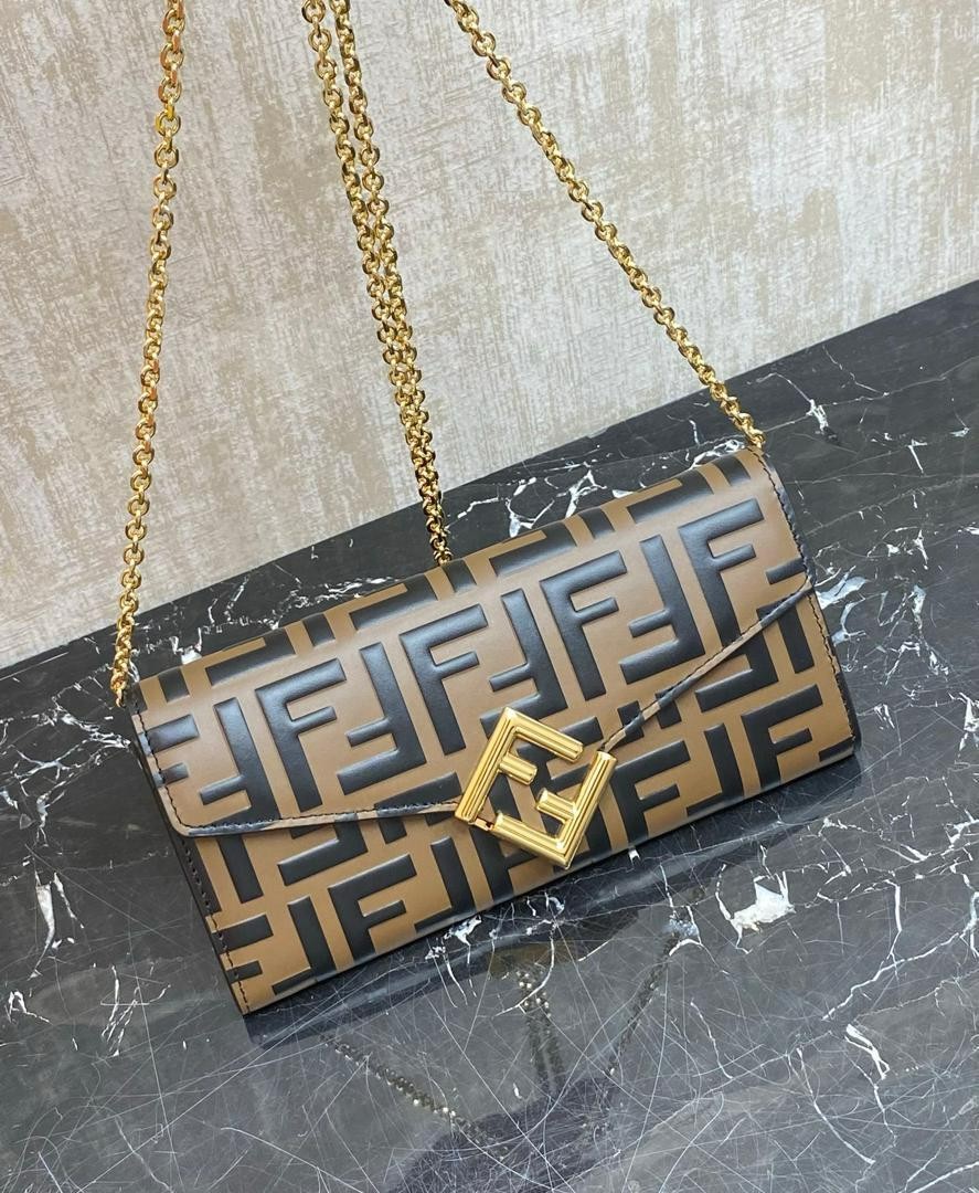 TRUE TO ORIGINAL | Fendi Diamonds Wallet on Chain Brown – 19×10.5×3.5cm